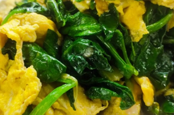 菠菜为藜科菠菜属植物,又可叫做波斯菜、菠薐,其中含有膳食纤维、维生素等营养成分;鸡蛋含有蛋白质、脂肪等营养成分。菠菜和鸡蛋一起吃具有补充营养、润肠通便的功效。