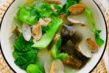 车螺又称花蛤、文蛤,车螺芥菜汤是指用主料为车螺、芥菜制成的汤,是常见的菜品,具有清热利水、化痰的功效。