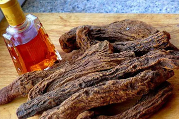 大芸又叫肉苁蓉,为列当科植物肉苁蓉或管花肉苁蓉的干燥带鳞叶的肉质茎;酒为米、麦、黍和面酿成,味甘、微苦、辛,性温,有毒,归心、肝、肺、胃经,大芸泡酒具有温经散寒、补肾养血、润肠通便等功效。