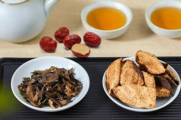 白茶加陈皮加红枣是指白茶中加入陈皮、红枣一起冲泡饮用。白茶为轻微发酵茶,味甘;陈皮气香,味辛、苦;红枣气微香,味甘。白茶加陈皮加红枣具有祛湿、益气健脾等功效。