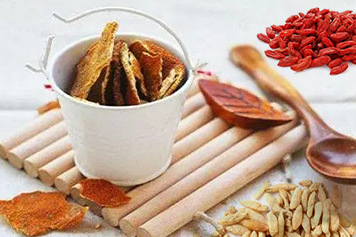 陈皮是芸香科植物橘及其栽培变种的干燥成熟果皮,其味辛、苦,性温,入脾、肺经。麦冬为百合科植物麦冬的块根,味甘、微苦,性微寒,入心、肺、胃经。枸杞是茄科宁夏枸杞的干燥成熟果实,性平,味甘,入肝、肾、肺经。陈皮麦冬枸杞一起泡水喝具有养阴润肺、益精明目、理气健脾的功效。
