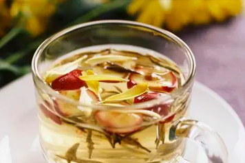 茶叶味苦、甘,性凉,入心、肺、胃经;山楂为蔷薇科植物山里红或山楂的干燥成熟果实,味酸、甘,性微温,归脾、胃、肝经。茶叶和山楂泡水喝具有消食健胃、行气散瘀、除烦渴等功效。