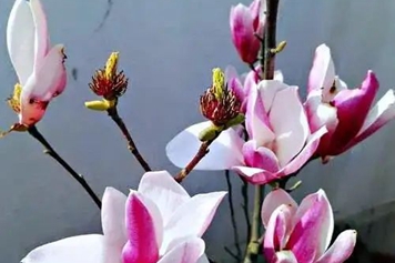 二乔玉兰花是木兰科玉兰属植物,属于玉兰的一个品种,入药时叫做辛夷,具有散风寒、通鼻窍的功效。