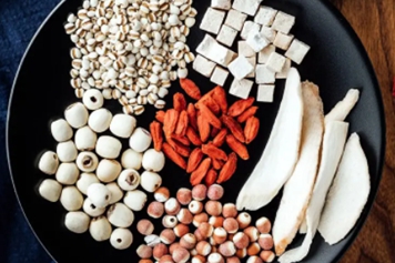 茯苓味甘、淡,性平,归心、脾、肺、肾经;莲子味甘、涩,性平,归心、脾、肾三经;山药味甘,性平,归脾、肾经;薏米味甘、淡,性微温,归脾、胃、肺经。茯苓莲子山药薏米一起具有利水消肿、宁心安神、补益脾肾等功效。