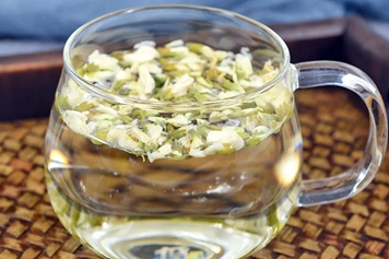 取适量槐花洗净放入杯中,加入适量开水闷泡片刻,待水温适宜后即可饮用。