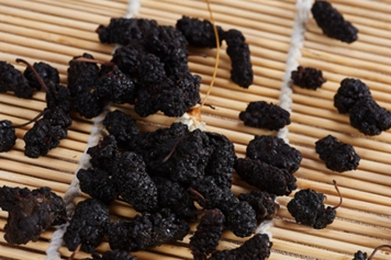 干桑果味甘,归心脾经,脾主生血,甘则能补,因此干桑果具有滋补阴血的功效,可以缓解肝肾不足、阴血亏虚所致腰膝酸软、眩晕耳鸣、心悸失眠、须发早白等病症。