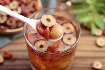 枸杞大枣蜂蜜泡水时,大枣性温,味甘,归脾、胃经,甘温善补益,能够补益脾胃之气,促进消化胃中食积,其与性平的枸杞、蜂蜜合用具有健脾益胃的功效,适用于倦怠乏力、食欲不振等症状。