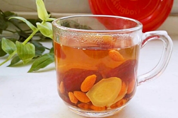 枸杞为枸杞的成熟籽实,大枣为鼠李科落叶灌木或小乔木枣树的果实,生姜为姜科植物姜的根茎。枸杞大枣生姜泡水喝具有发汗解表、养肝明目、健脾和胃的功效。