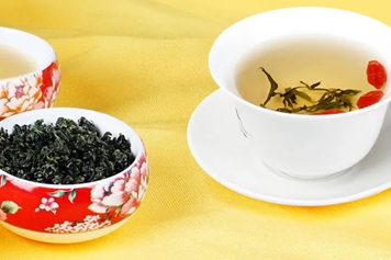 取适量枸杞、茶叶放入杯中,倒入热水进行冲泡,并均匀搅拌,待温度适宜后服用即可。