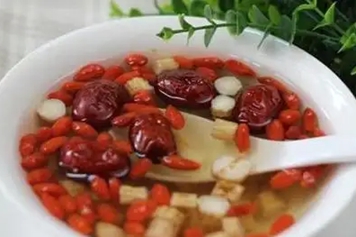 枸杞甘平,入肝肾经,能滋肾精、补肝血,为平补肾精肝血之品,其与甘味的红枣、党参泡水喝具有滋补肝肾的功效,可用于肝肾不足所致的腰膝酸软、眩晕耳鸣等病症。