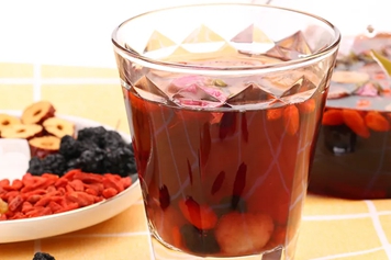 枸杞甘平,入肝肾经,能滋肾精、补肝血,为平补肾精肝血之品。桑葚甘酸,入肝肾经,能益肾固精。二者与味甘可补的红枣、桂圆泡水喝具有滋补肝肾的功效,可用于肝肾不足所致的腰膝酸软、眩晕耳鸣等病症。