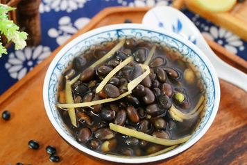 将黑豆提前3小时泡好,生姜洗净、切块,一同放入锅中,加水炖至熟透后,即可饮用。