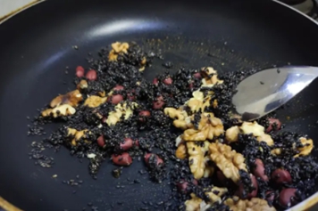 黑芝麻甘平,入肝、肾经,有补肝肾、益精血之功;核桃药性温和,入肾经,有温补肾阳之效,故黑芝麻核桃花生一起吃具有补肝肾之功,有助于精血亏虚、头晕眼花、耳鸣耳聋、须发早白、肾阳不足、腰膝酸软、小便频数等病症。