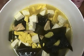 海带豆腐鸡蛋汤为常见汤品,其中含有蛋白质、碳水化合物、维生素、矿物质等多种营养成分,海带豆腐鸡蛋汤具有补充营养、提供能量等功效。