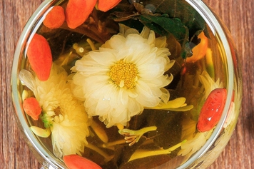 菊花辛散苦泄,微寒清热,入肝经,既能疏散肝经风热,又能清泻肝热以明目;决明子苦寒清泄,入肝经,功善清肝明目。故金银花枸杞菊花决明子泡水喝具有清肝明目的功效,可用于目赤涩痛、目暗不明等病症。