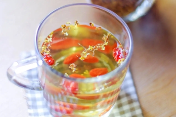 桂花性温入肾经,可温肾助阳。枸杞甘平,入肝、肾经,长于滋肾精、补肝血。桂花和枸杞一起喝具有滋补肝肾的功效,可用于肝肾阴虚、精血不足等证。