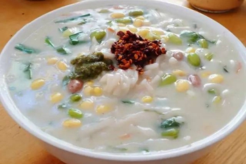 浆面条又叫酸面条,是以绿豆浆发酵制作面浆,经特殊工艺而成的面条,具有润肠通便、补充能量等功效。