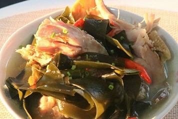 鸡肉炖海带汤中的海带性味咸、寒,归肝、胃、肾经,具有利水消肿、软坚散结的功效。
