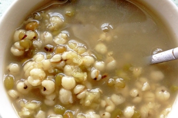 绿豆甘寒,能清热消暑、除烦止渴、通利小便。故绿豆薏米糖水具有消暑的功效,可用于暑热烦渴、尿赤等症。