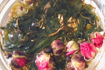 玫瑰花味甘、微苦,性温;蒲公英根味苦、甘,性寒。玫瑰花和蒲公英根一起喝具有行气解郁、利湿通淋等功效。