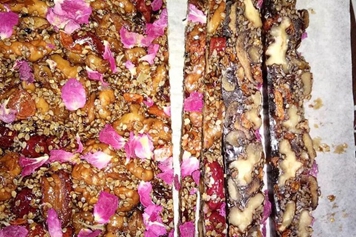 阿胶用黄酒浸泡直至烊化,花生芝麻小火下锅翻炒备用,将玫瑰花铺在盘底,取阿胶与其他敷料搅拌均匀压实,放入冰箱冷藏一天,即可取出切片食用。