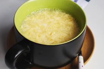 取适量米汤水加热,鸡蛋搅散备用,米汤水沸腾后即可关火,冲入搅散的鸡蛋,闷1分钟左右即可盛出食用。
