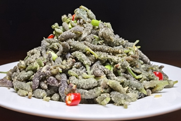 毛毛虫野菜即构树穗,为一种可食用的野菜,口味清香,具有充饥、促进胃肠蠕动等功效。