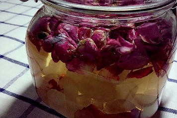 玫瑰花泡醋和冰糖营养丰富,口味酸甜,具有补充营养、促进食欲等功效。