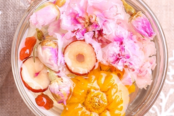 菊花归肺肝二经,味辛、甘、苦;枸杞归肝肾经,味甘,性平;红枣归脾、胃、心经,味甘,性温;玫瑰花归肝、脾经,味甘、微苦,性温。菊花枸杞红枣玫瑰花茶具有行气解郁、养血安神的功效。