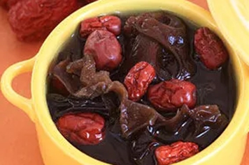 木耳姜片红枣汤中木耳甘平,入胃、大肠经,具有益气补血的功效;红枣入心经,能养心血,安心神,具有养血安神的功效,所以木耳姜片红枣汤具有补气养血的功效,可用于心阴不足、肝气失和、气血亏虚等。