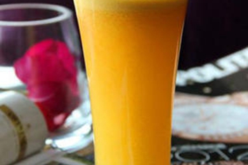 芒果雪梨汁酸甜爽口,具有补充营养、润肠通便等功效。