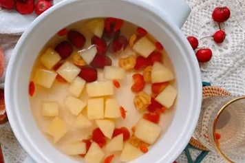 山楂苹果梨煮水味道清新爽口,具有补充营养、润肠通便等功效。