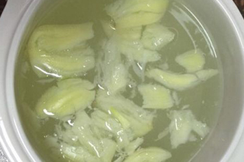 将大蒜洗净,放置在砂锅中,熬至规定时间,制成蒜水,即可盛出饮用。