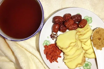 生姜味辛,性微温;大枣味甘,性温;枸杞味甘,性平,生姜加大枣加枸杞具有补中益气、滋补肝肾等功效。