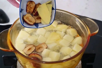 将苹果、生姜洗净切块,放入锅中加水煮制,煮熟放温食用。