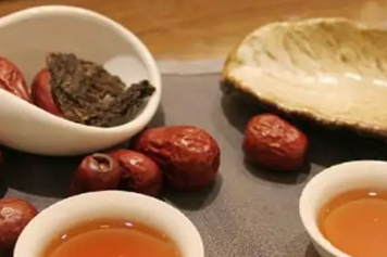 普洱茶加红枣冲泡后饮用,味道甘甜,具有补充营养、养血安神的功效。