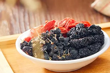 桑葚干加枸杞子中的桑葚生于丘陵、山坡、村旁、田野等处,常可在5~6月桑葚的果穗变红色时采收。