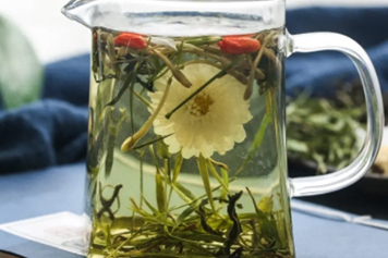 蒲公英味苦、甘,性寒,归肝、胃经;金银花味甘,性寒,归肺、心、胃经,蒲公英金银花茶具有清热解毒、消肿散结、利湿通淋等功效。