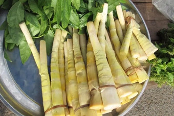 将南竹笋洗净、切块,放入锅中加入调味品后炒食。