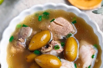 青橄榄炖瘦肉口感鲜香,具有补充能量、润肠通便等功效。