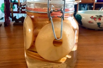苹果加白醋煮水中的白醋,是用高梁、米、大麦等为原料酿制而成的含有乙酸的液体。