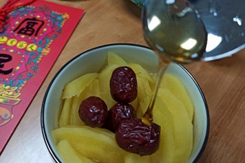 苹果、蜂蜜均味甘性平,其中苹果入脾、胃经,蜂蜜入肺、脾、大肠经,蒸苹果加蜂蜜具有和中益气、润燥止咳的功效。