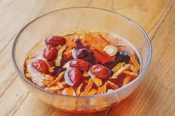 苹果味甘,性平;陈皮味苦、辛,性温;红枣味甘,性温。苹果红枣陈皮水则具有益气健脾、化痰宽胸的功效。