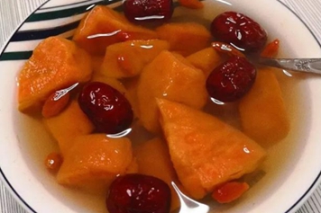 红薯和红糖一起可以煮食,味道甘甜,具有增进食欲、补充营养的功效。