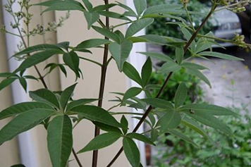五指风叶一般在夏末开花时采叶,鲜用或堆叠踏实,使其发汗,倒出晒至半干,再堆叠踏实,待绿色变黑润后再晒至足干后备用。