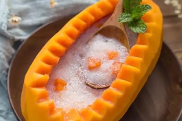 燕窝炖木瓜是一道营养成分丰富的美食,口感清香甘甜,具有润肠通便、提供能量的功效。