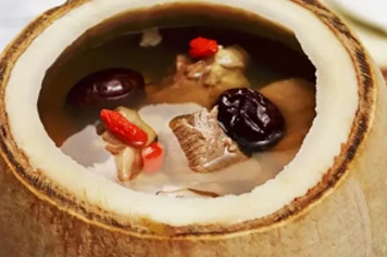 椰子炖鸡汤为日常生活常见汤品之一,口味鲜甜、营养丰富,具有补充营养、提供能量的功效。
