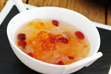 银耳桃胶红枣枸杞汤质润甘甜,是一道滋补汤品,具有补脾益气、滋补肝肾、通淋止痢的功效。