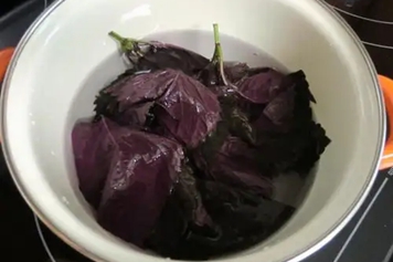取适量紫苏叶放入杯中,加开水冲泡,待放温后即可饮用。
