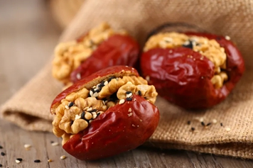 枣加核桃又叫枣夹核桃,是一种常见的零食小吃,具有提供能量、补充营养、润肠通便的功效。